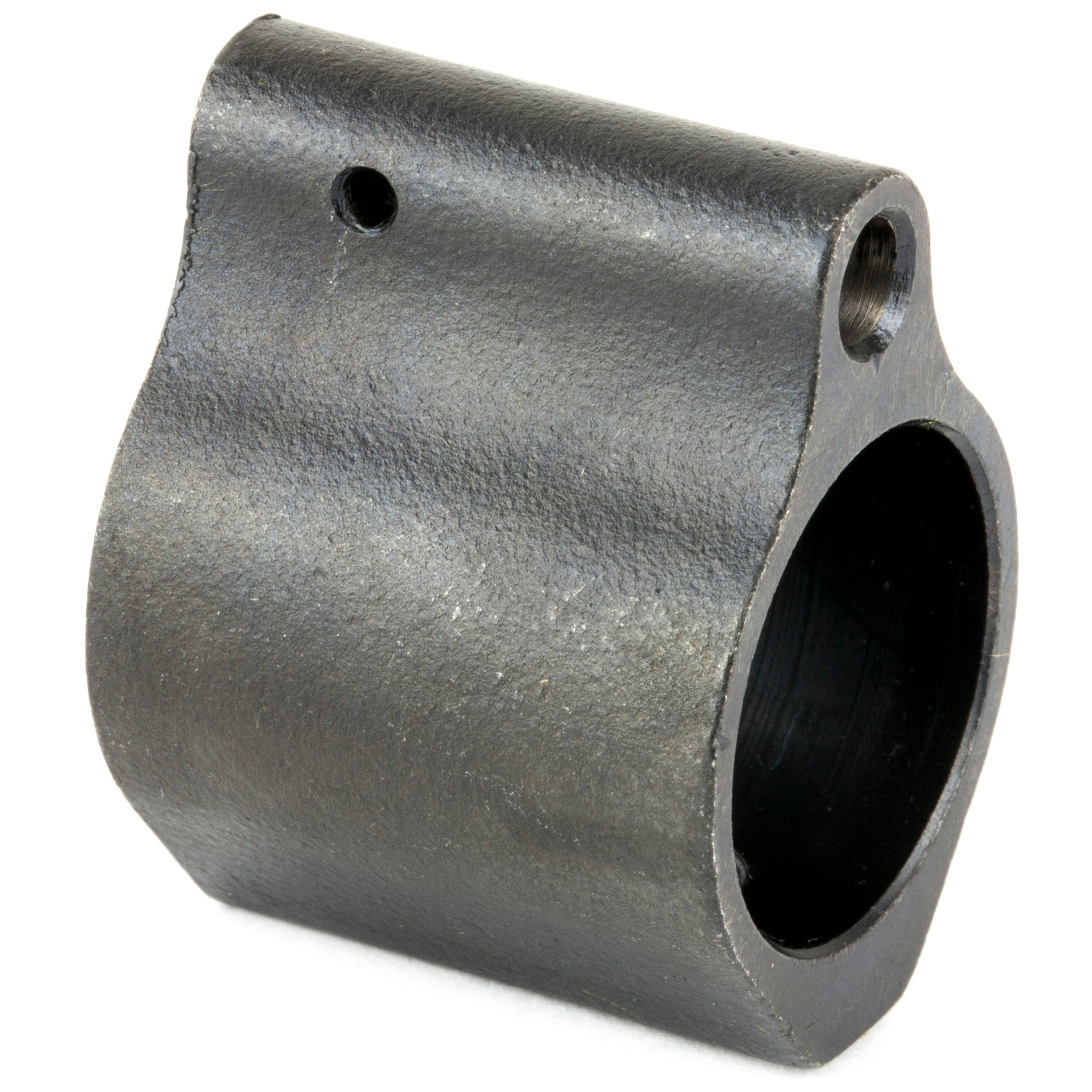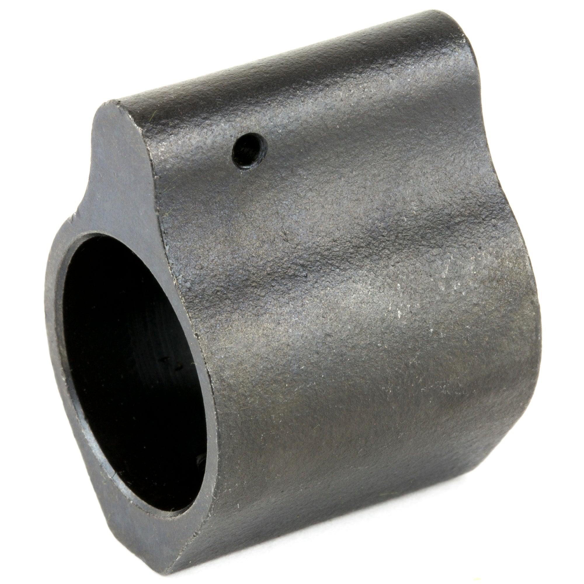 This low profile gas block was designed to allow an extended handguard to cover the gas return area of the barrel. It is machined from steel and Black Nitride finished.