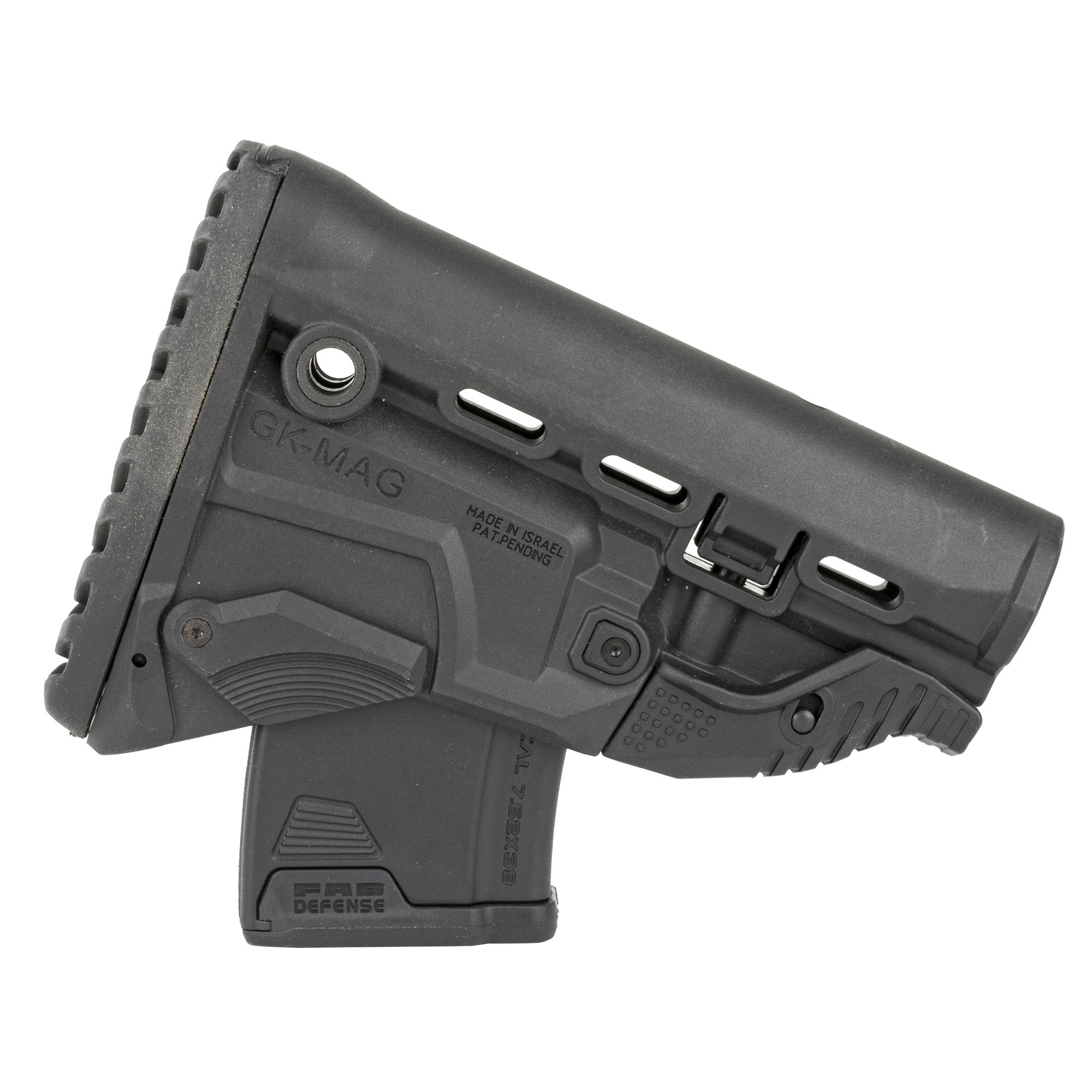The GK-MAG Survival Buttstock w/built-in mag carrier whether it's your accuracy or numerous target engagements you can depend on your last ten chances with FAB'S Survival Buttstock w/Built-in 10 round Mag Carrier. The GK-MAG incorporates an inconspicuous/sleek AK Magazine Carrier.