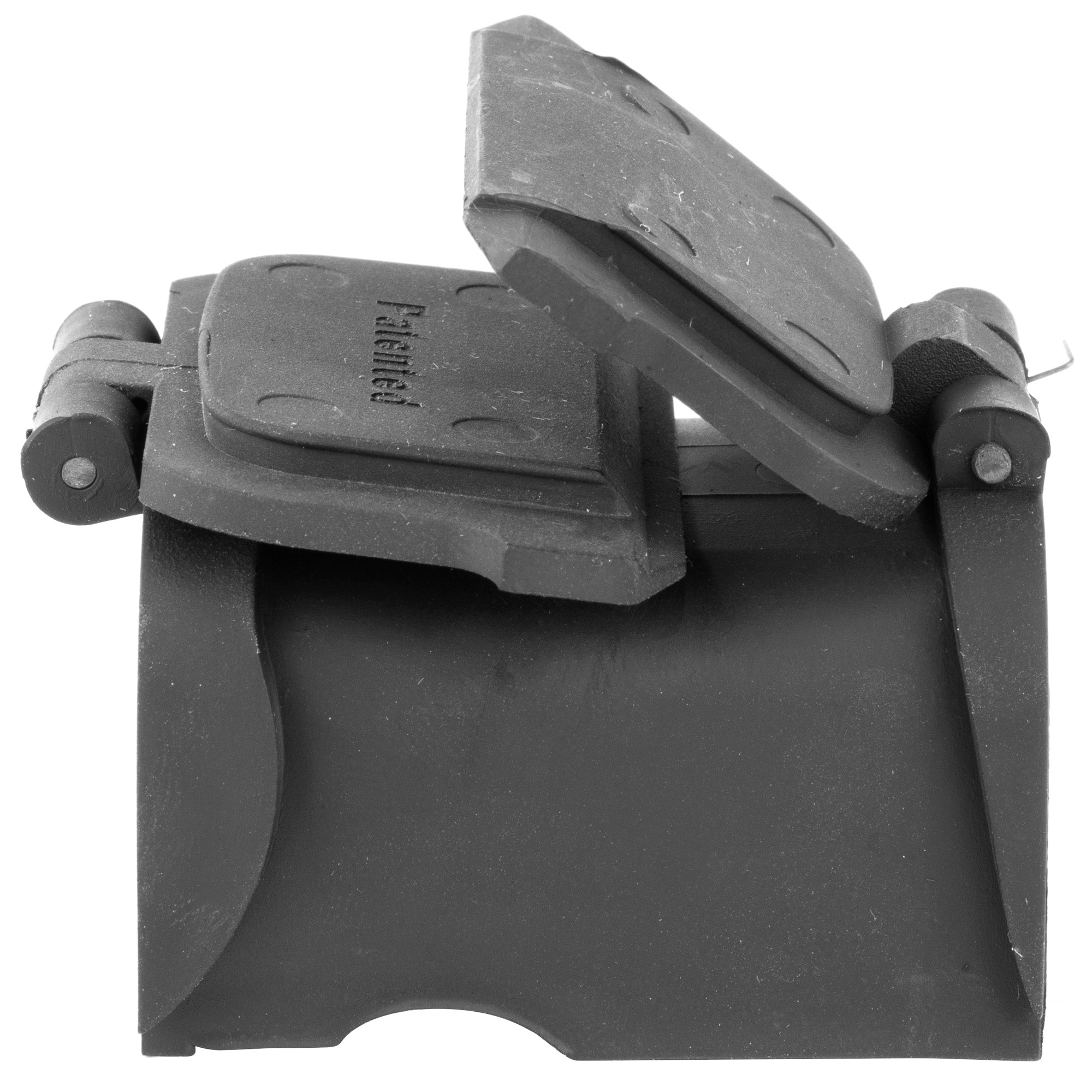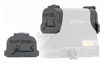 The GG&G EOTech Lens Covers fit between the EOTech hood and the body of the EOTech housing. They are spring operated so that once pressure is applied to release them from the closed position" they spring open. The rear cover lays across the top" so as not to interfere with the field of view. The front cover opens and serves as a sun shield. However" if heavy brush etc. is encountered" the front lens will fold back so that it is not damaged. Because of the contours of the EOTech housing" these rifle scope lens covers are not 100% waterproof" but they do prevent most dust" debris" rain and snow from accumulating on the lenses.