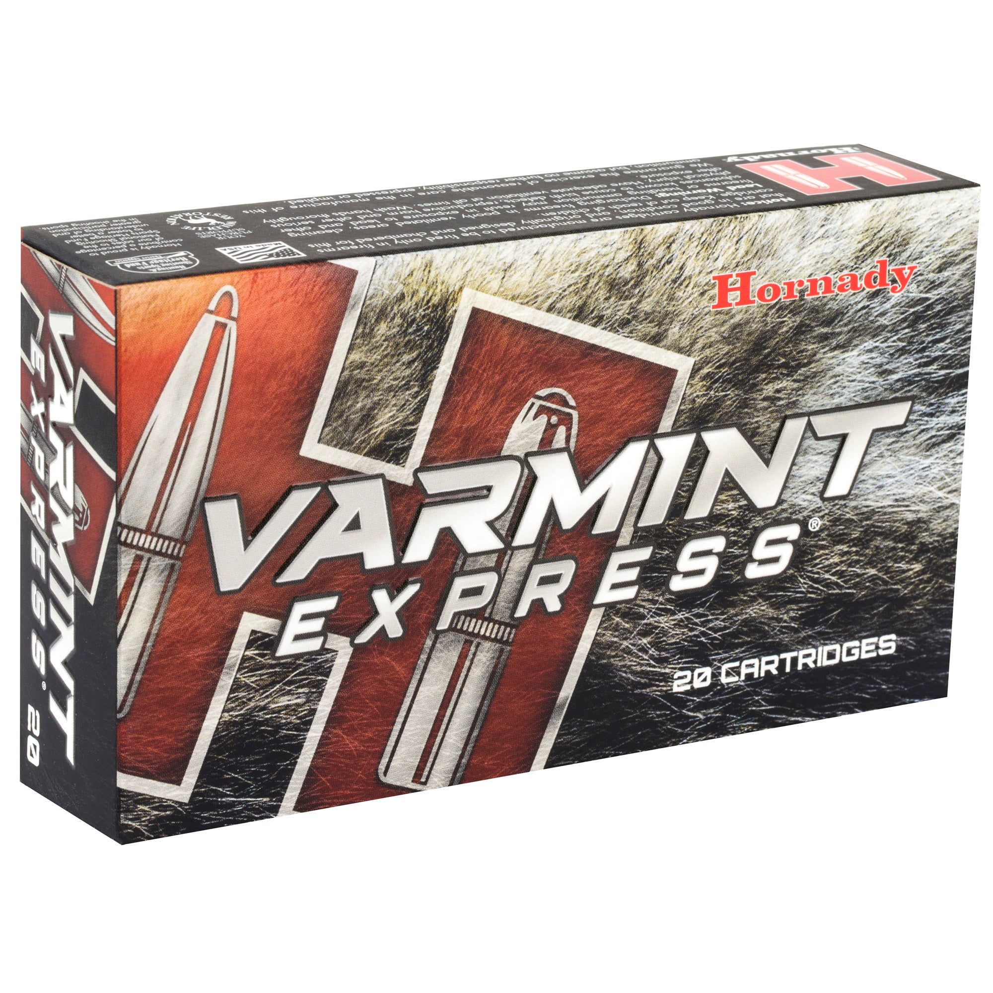 Hornady(R) Varmint Express(R) ammunition is designed around the hard-hitting performance of the famous V-MAX(R) bullet. Polymer tipped V-MAX(R) bullets deliver match accuracy" high ballistic coefficients" wind defying trajectories" and rapid fragmentation upon contact. Each Varmint Express(R) offering is loaded with high quality cases and carefully selected propellant and primers that are chosen to provide the best performance in each individual load.