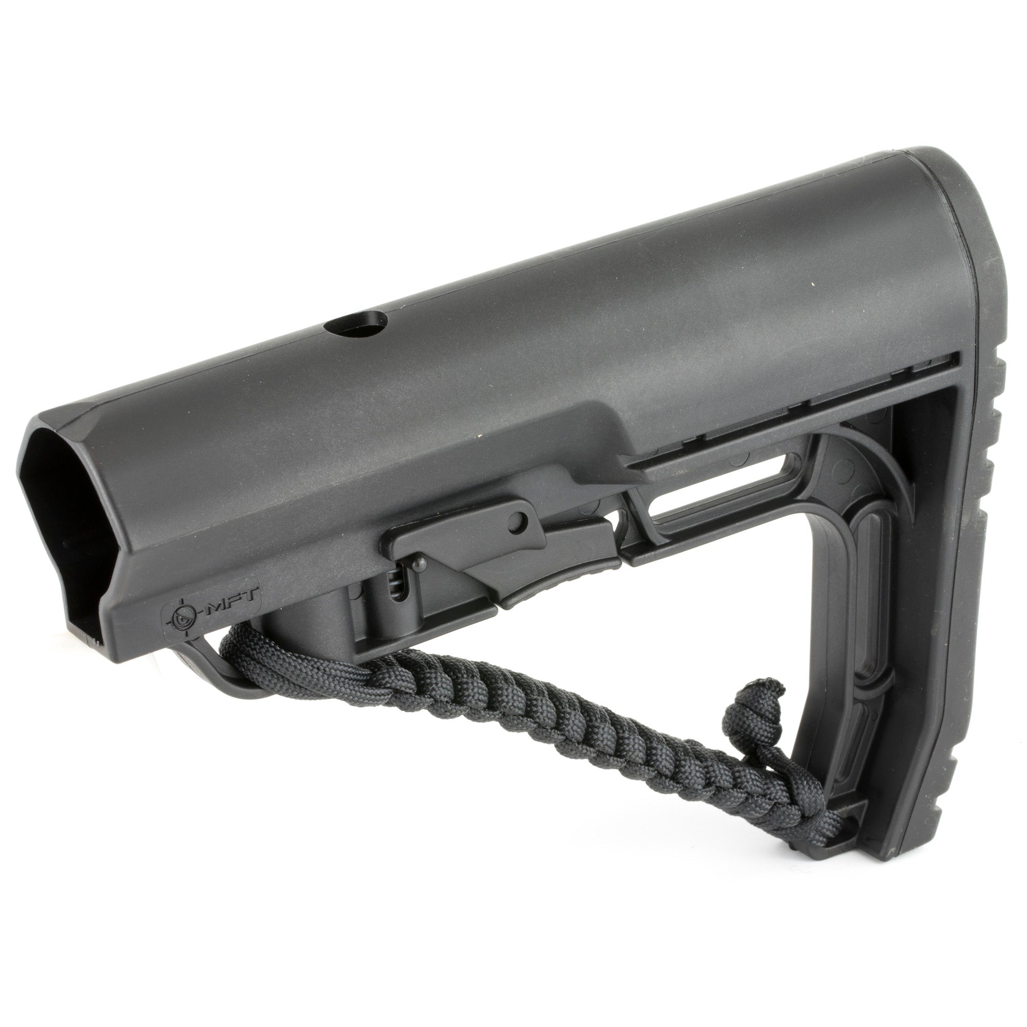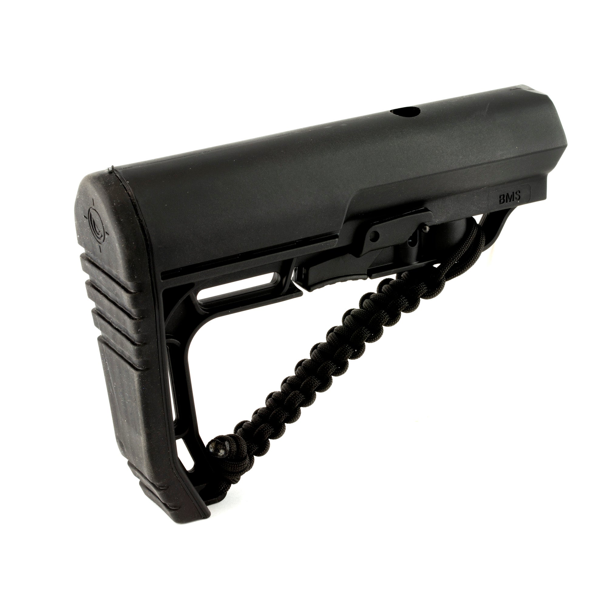 Approximately 8 feet of Paracord braided in a regular weave directly onto a Battlelink Minimalist Stock adds only a half an ounce. The strap will not interfere with the use of the QD mount or its benefit to ambidextrous shooters.