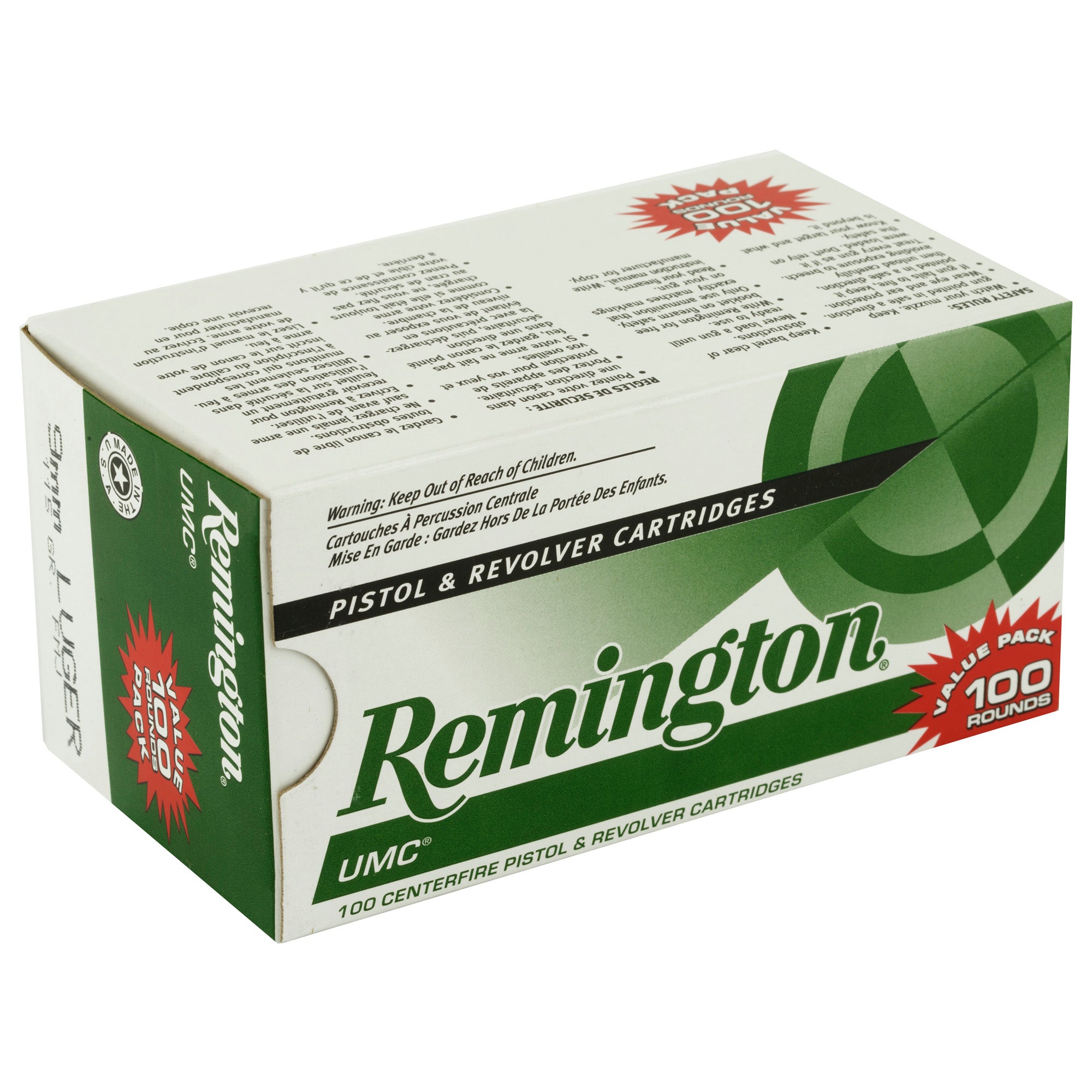 All UMC handgun ammunition is American-made in Lonoke" Arkansas" using first-quality" factory-fresh brass and clean-shooting Kleanbore(R) primers to provide the best value for practice" personal defense and hunting.