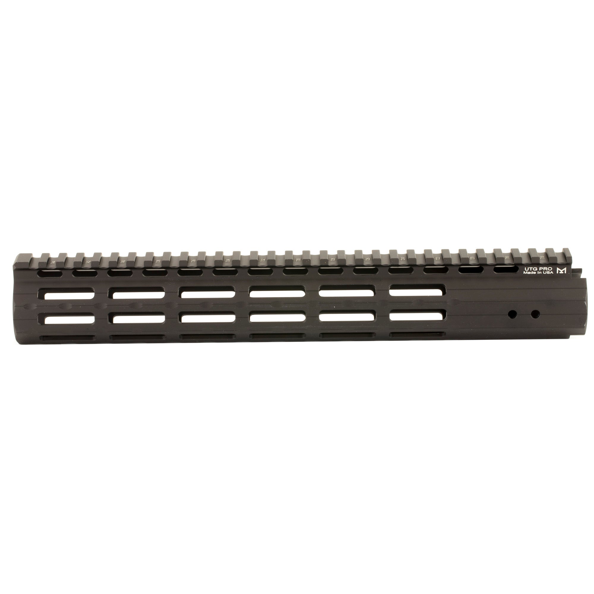 The UTG pro M-LOK AR-15 13" super slim free float handguard has a proprietary barrel nut design. It features 42 M-LOK slots on 7 slot tracks for mounting M-LOK rails and direct accessories. It has a 31 slot picatinny top rail" flush fitting and continuous with flat top AR-15 upper receivers" providing ample space for optics and other accessories. It includes an 8-slot picatinny rail section and a QD sling swivel adaptor for sling swivel attachment.